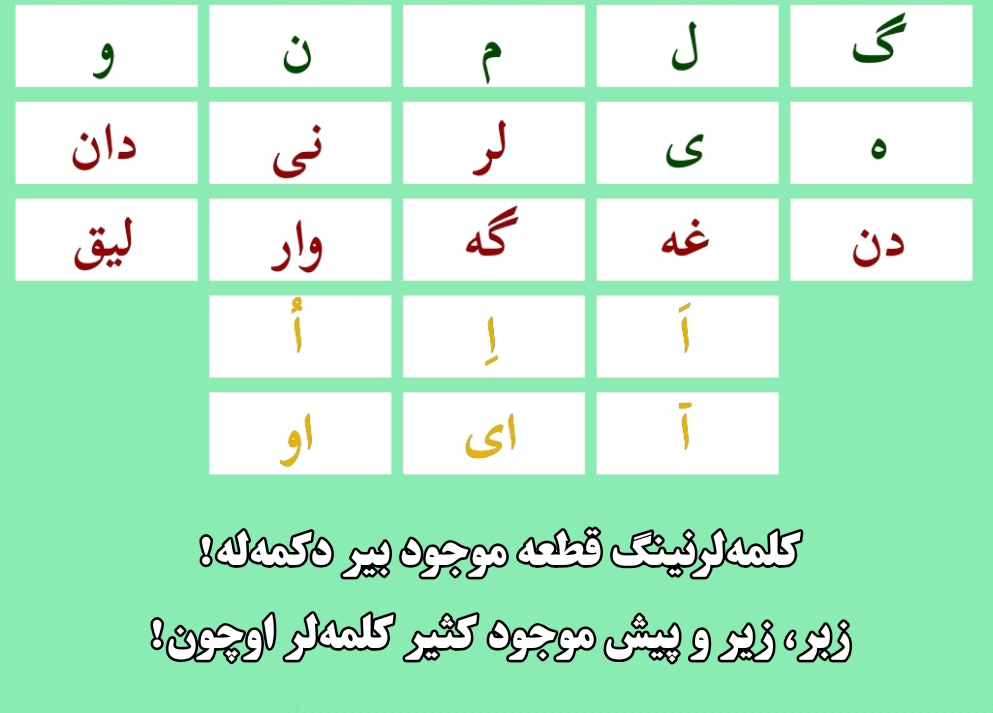 خیلی خوب ایون سیزنینگ کودک یا کودکلر اوچون، دکمهلی حرفلر! خوب ایون الفبا اوچون کلمهنینگ قطعهلریله
